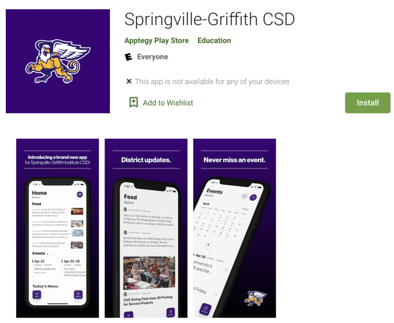 Introducing the brand new app for Springville-Griffith CSD.